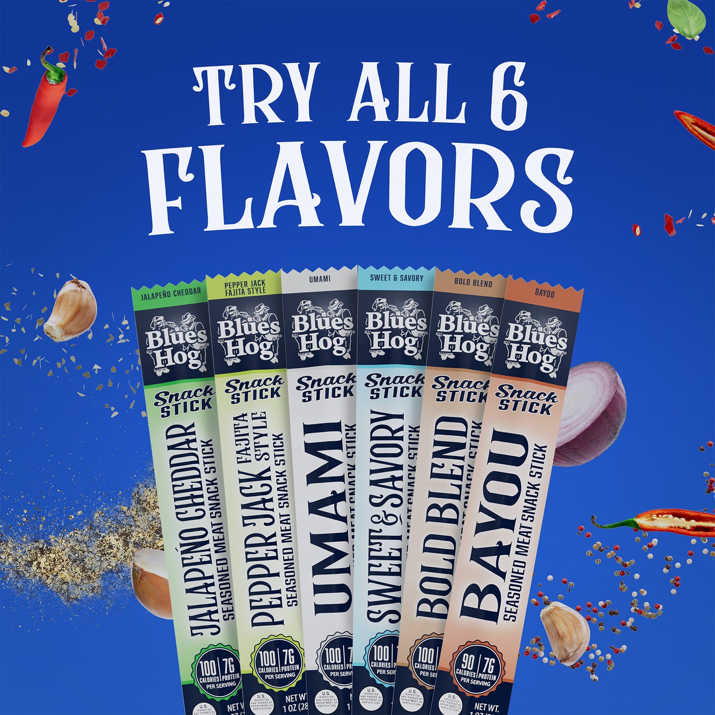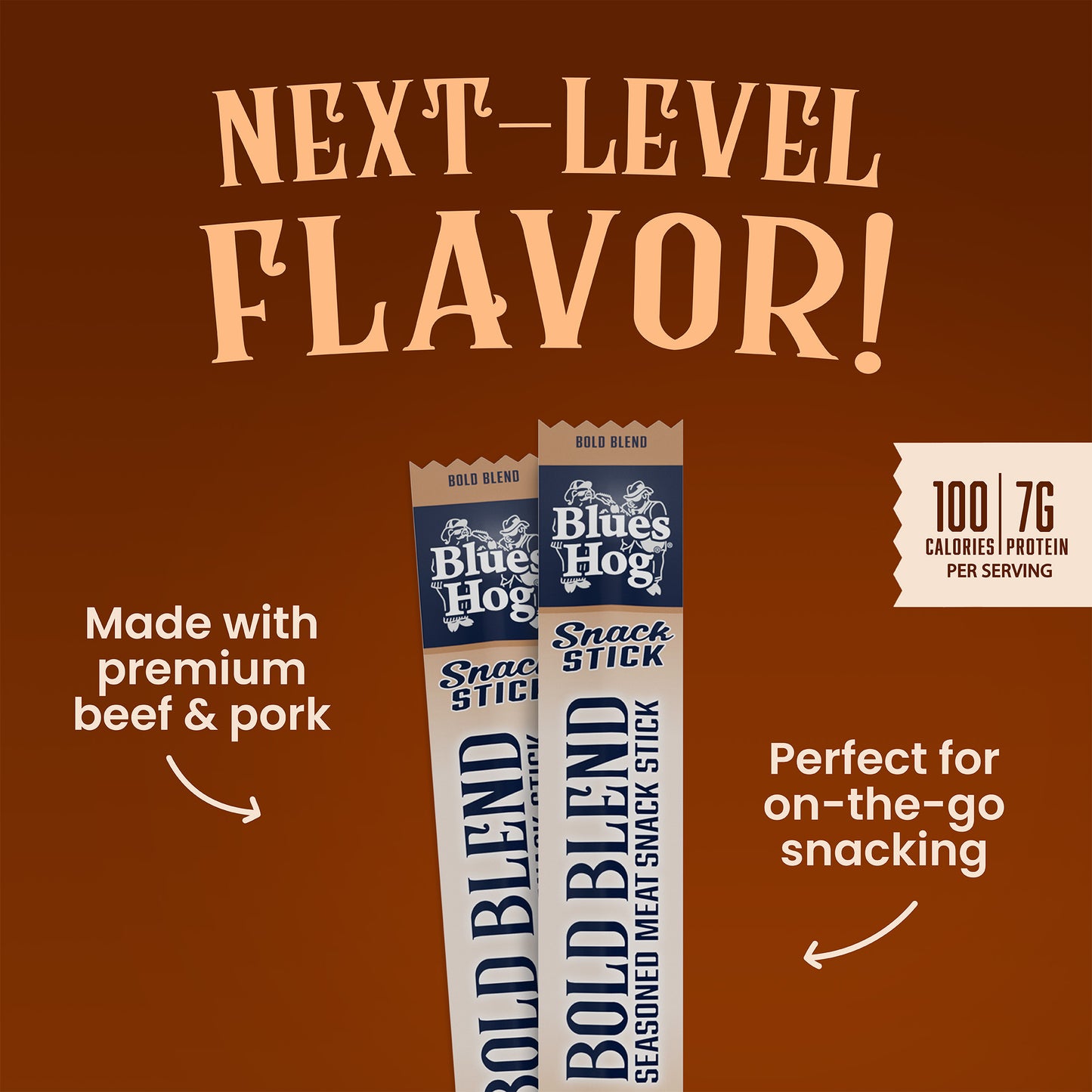 With 7 g of protein and 100 calories per stick, they are perfect for on-the-go adventures, energizing your day, or adding championship-level flavor anytime. Crafted with high-quality ingredients and proudly produced in the USA, each stick offers the pitmaster-approved taste of Blues Hog, the Choice of Champions™.